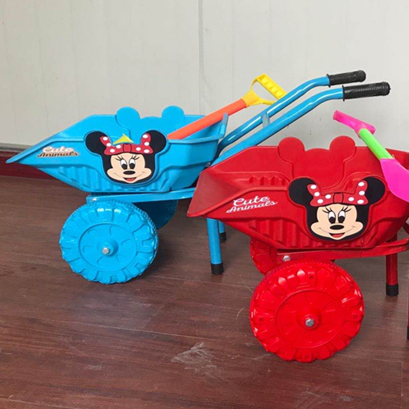 Simulation of children's beach trolley bulldozing and snow pushing two-wheeled sand play trolley